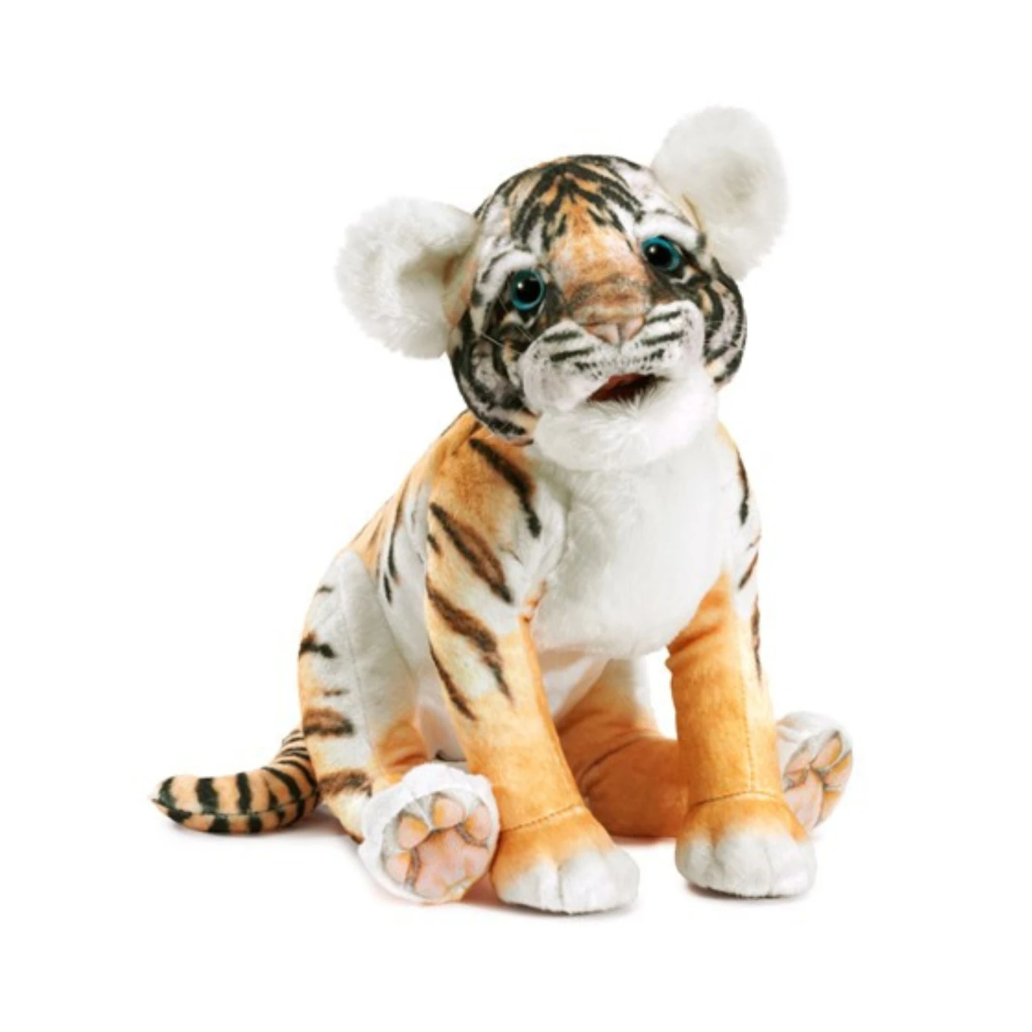 The Folkmanis Baby Tiger is an adorable little big cat that’s ready to play all day. Unique lifelike printed tiger stripes and big blue eyes with a movable mouth make this cub king of the jungle.