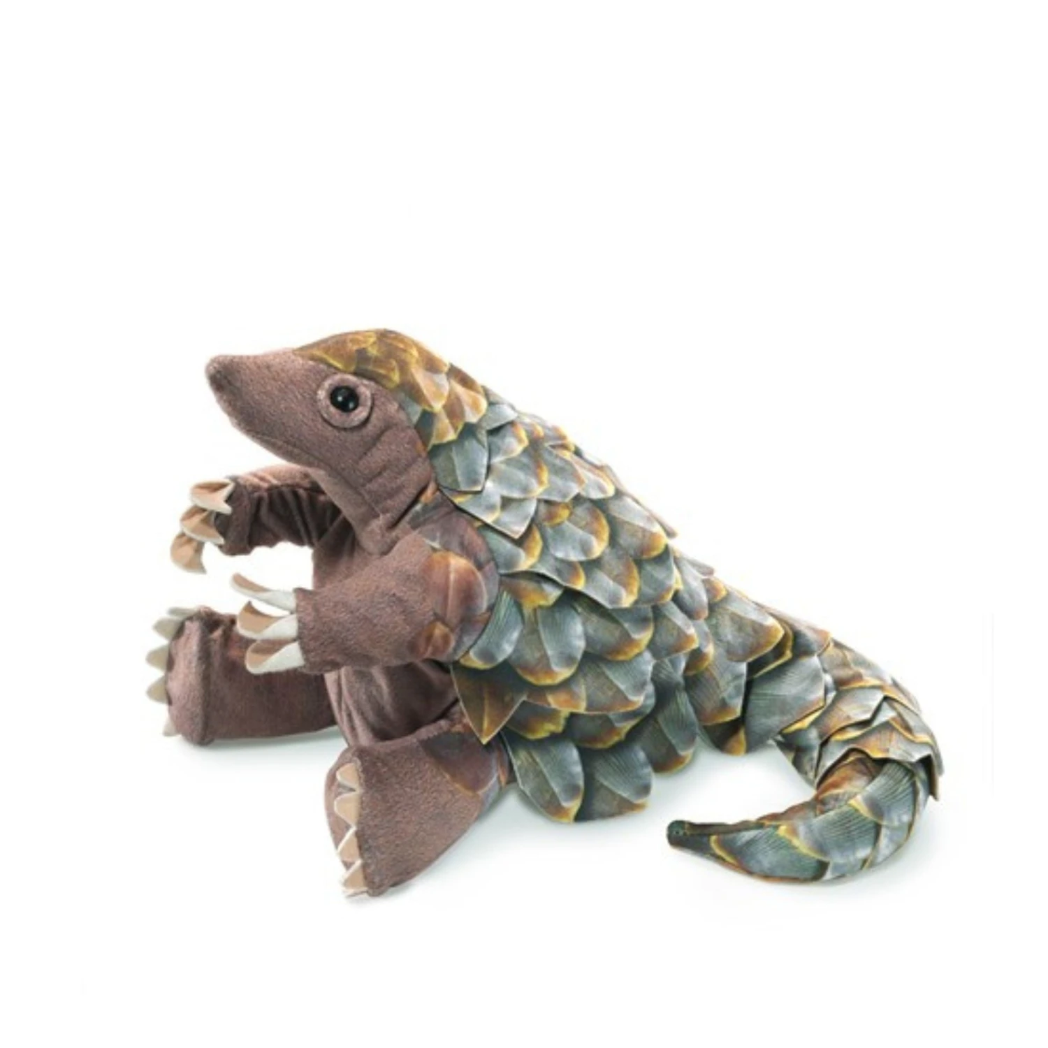 The fascinating Pangolin is an extraordinary scaly skinned mammal that resembles a reptile. Distinctive illusion printed scales, movable head and forelegs with a tail that wraps around gives life to this marvelous Folkmanis® Puppet.