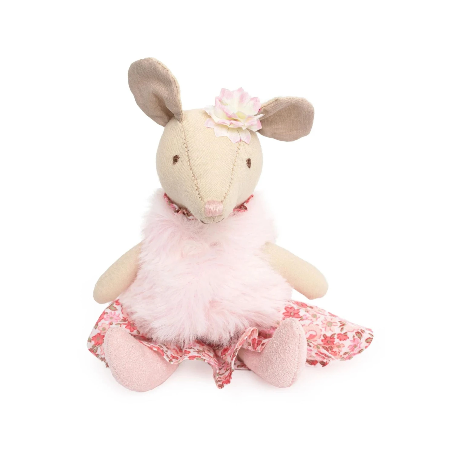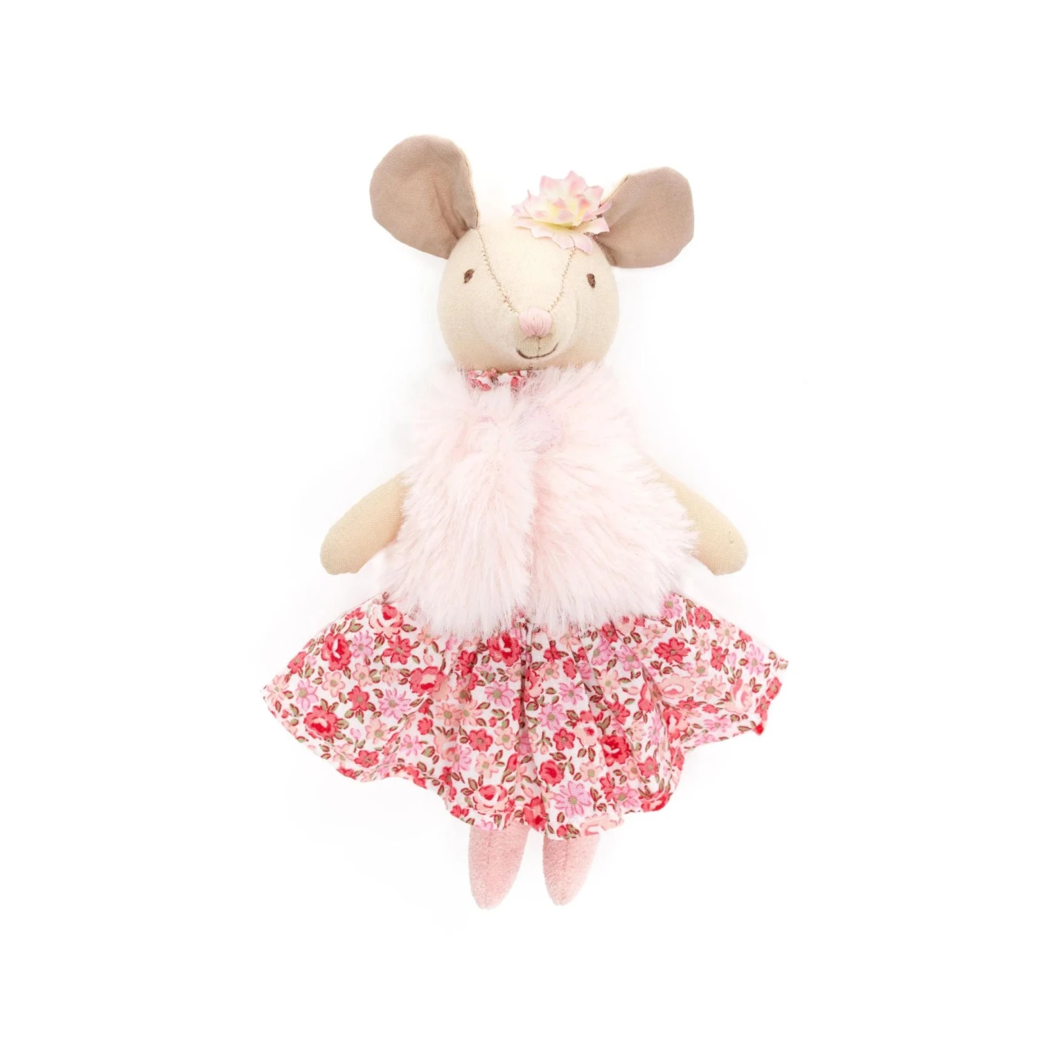 Ariella the Mouse doll has a soft body with an adorable pink fur vest and flower dress. Ariella is the most stylish mouse on the block! She even comes with a flower in her ear. The doll is made with stitched eyes & nose.