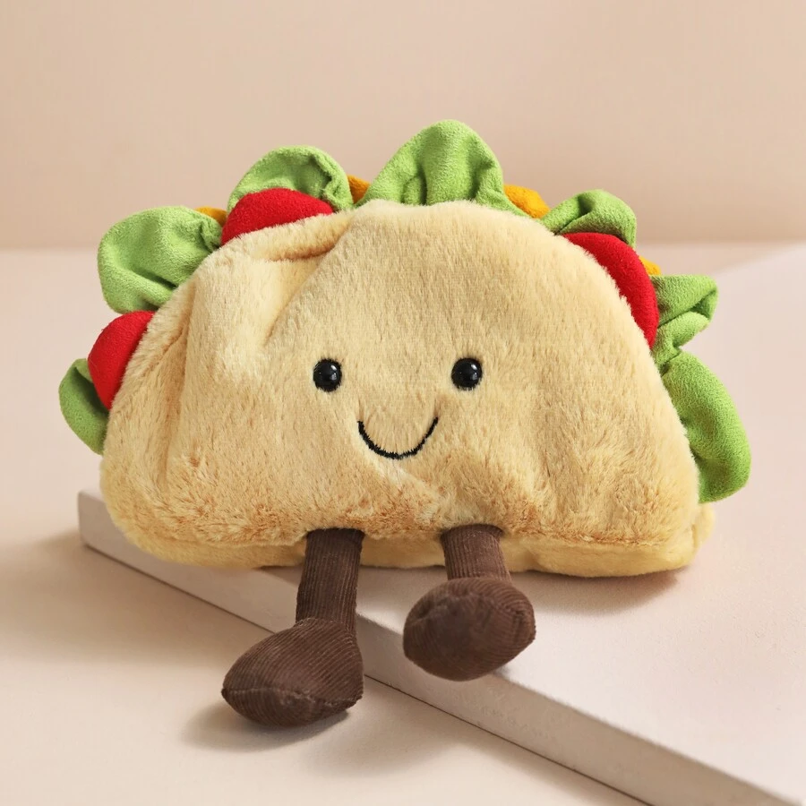 Amuseable Taco from Jellycat is ready to get the party started. Featuring a sturdy taco body filled with suedey salad details in green, yellow, and red, this adorable plush pal is perfect for foodies and children alike. Brown corduroy legs dangle from Taco’s body, while a sweet smiling face will fill anyone’s heart with joy.