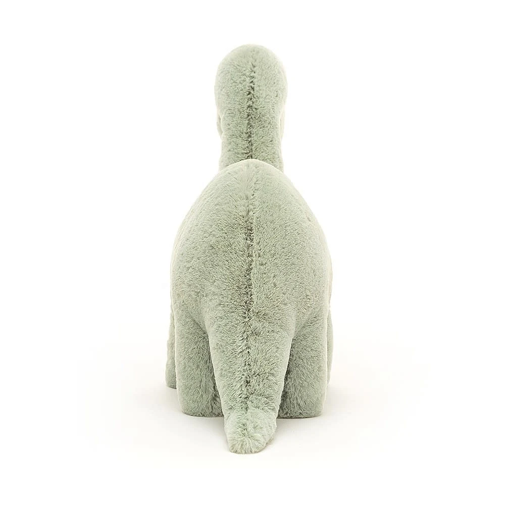 Jellycat Fossilly Brontosaurus is soft and green, sweet and never mean, this gentle giant has a long, long tail and a strong stretch neck.This chunky chum loves to rumble along on squashy feet, singing a bronto-chorus!