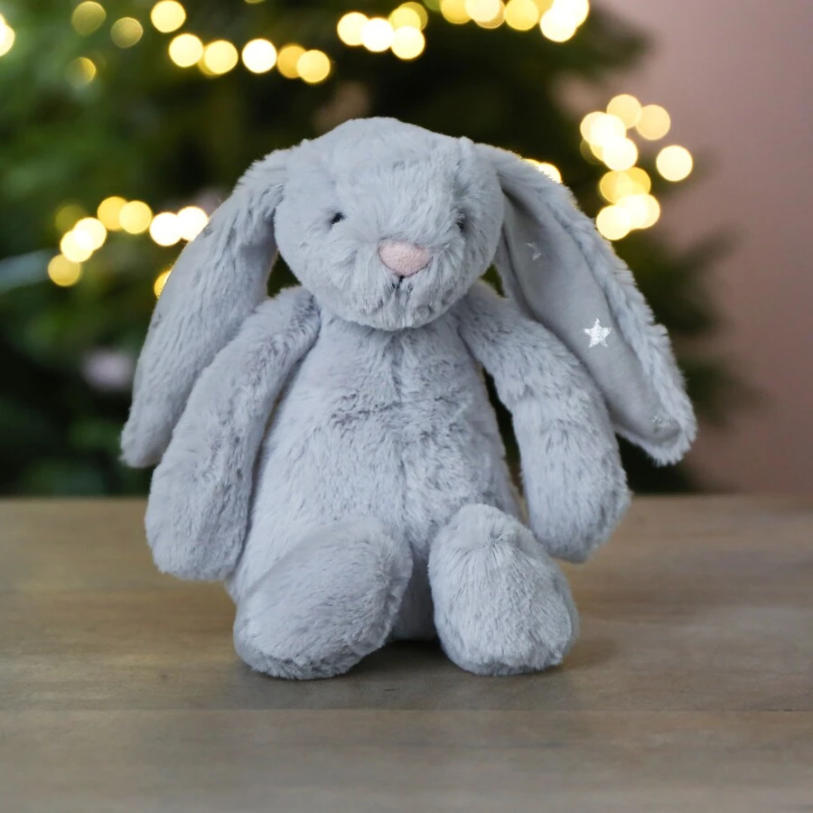 This bashful bunny from Jellycat is the perfect cuddly companion to help send your little ones off into a sound sleep. This super cute bunny has big, floppy ears with shimmering stars that look just like a night sky, with soft paws and a plushie pink nose. The perfect pal for bedtime cuddles, this little bunny makes a wonderful gift for children.