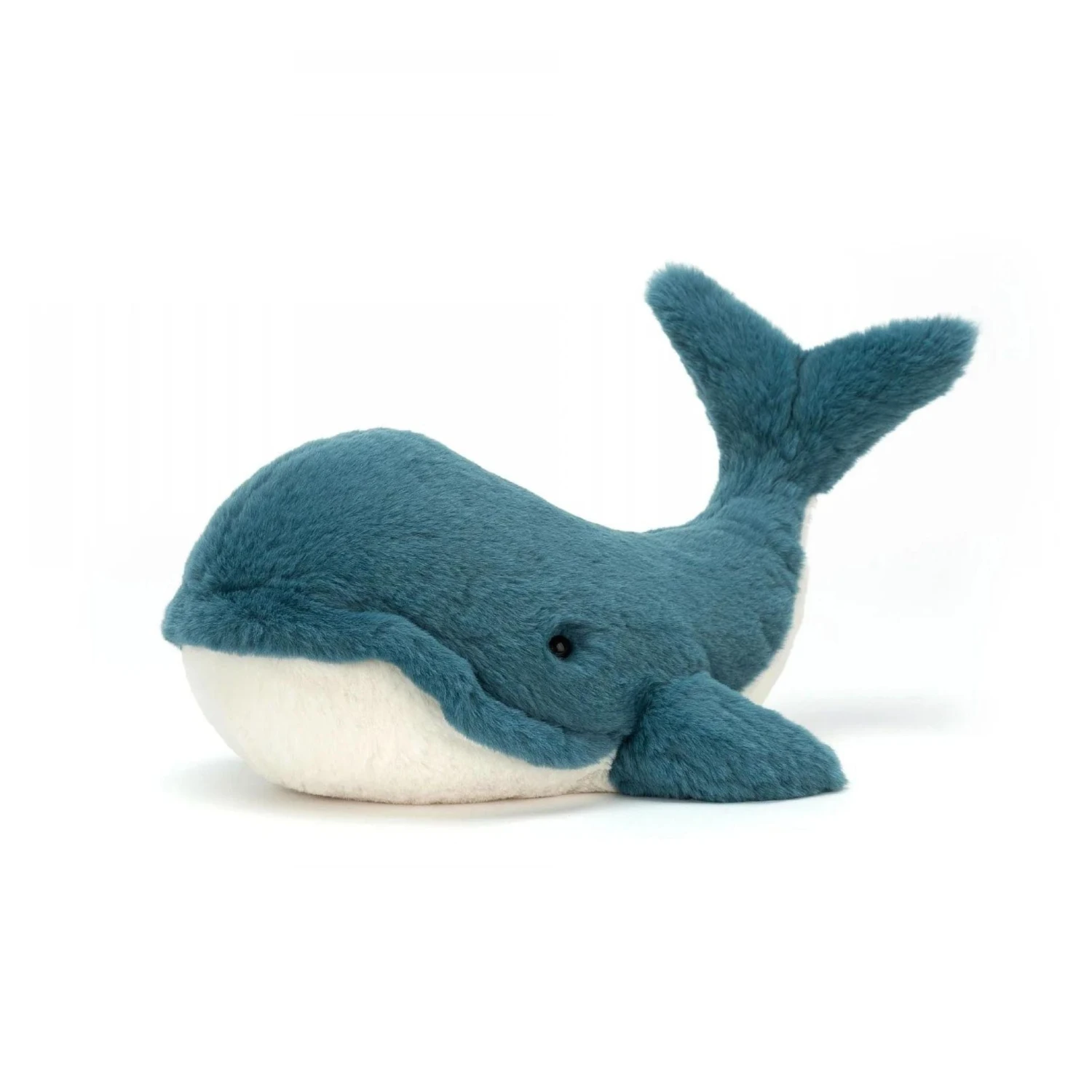 Wally Whale is a mighty marine mate! Splendidly squidgy in beautiful ocean blue, this chilled-out chonk glides, carefree, through the sea. This curious whale loves a big adventure!