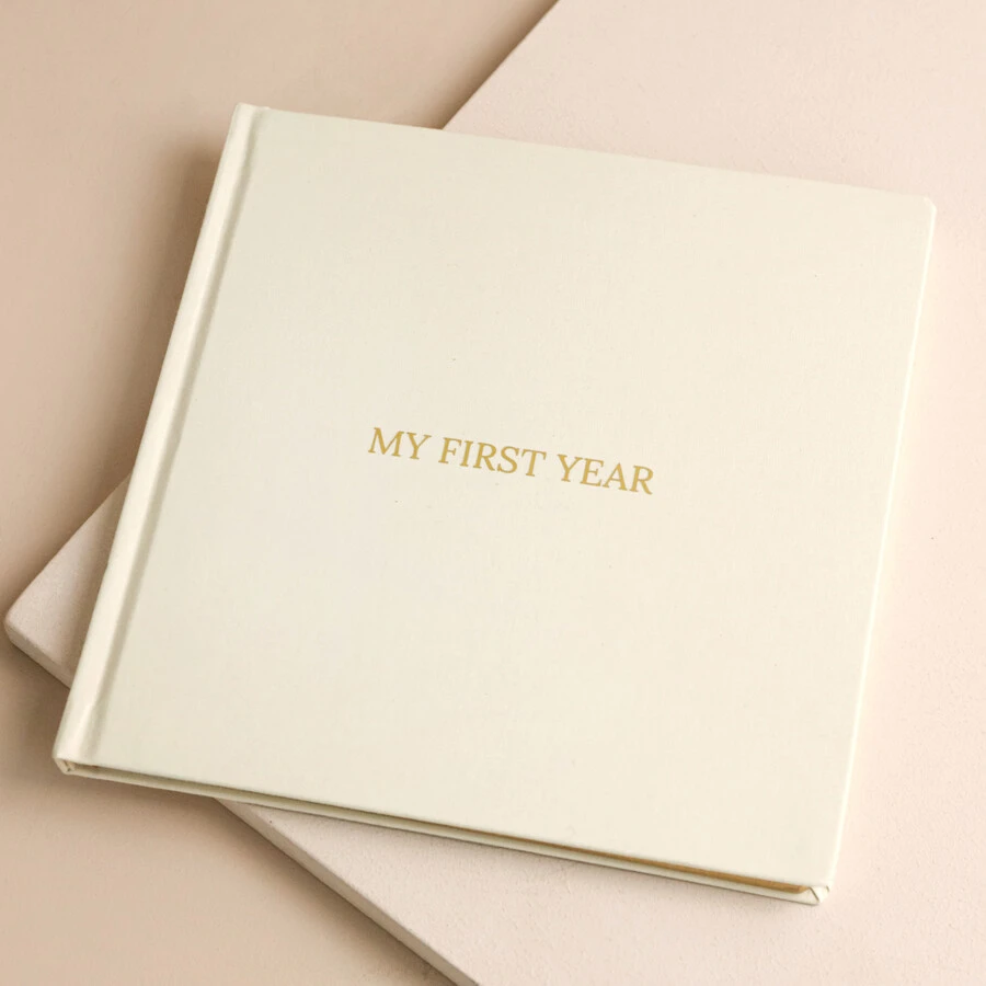 Also included is a cream fabric scrapbook, adorned with ‘my first year’ in gold foiling across the front and matching unlined, gold-edged pages. This memory book is the perfect way for them to document every moment.
